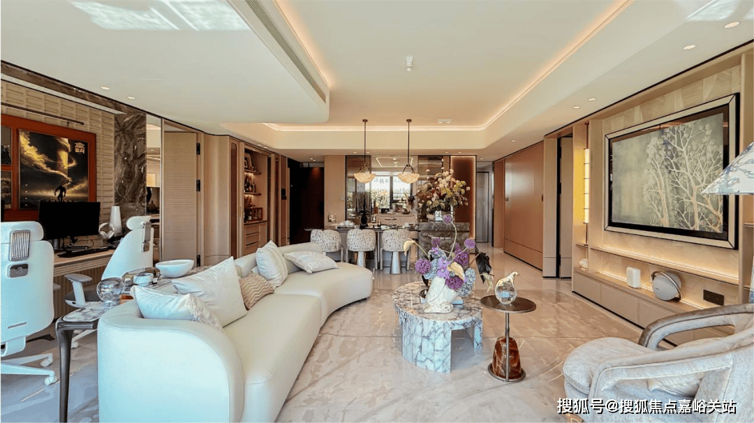 ,大平层,以至是厨房的灯带设想也正在做不异的圆弧处置
