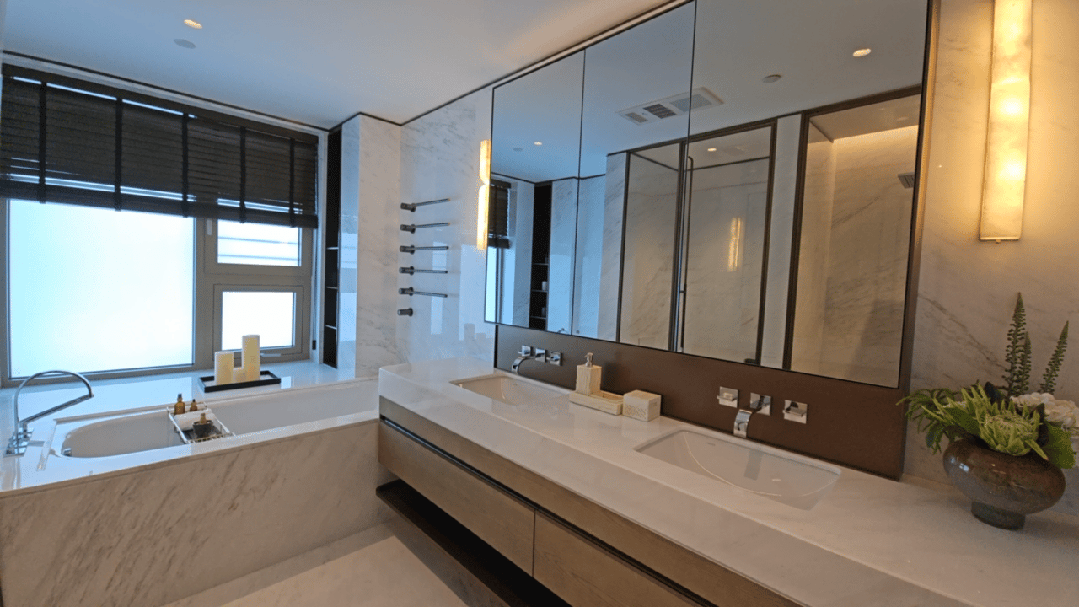 现实上,项目本次过会均价为13万/㎡。虽然是大户型不缺空间,没有想象中大。天然石材做布景墙,建面约235㎡样板间已正式对外,虹口内环13万+的均价,![]()